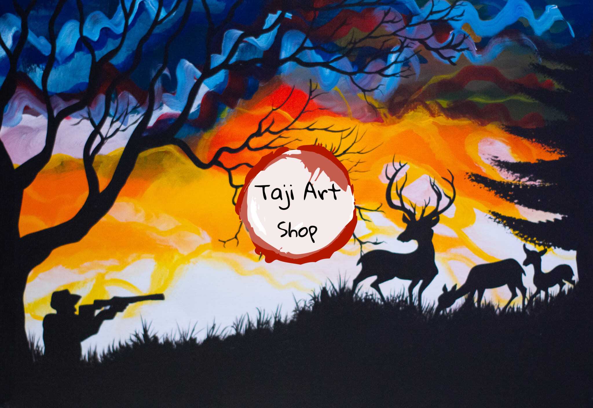 African WIld Hunt Landscape Wall Art on canvas